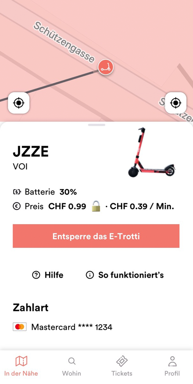 Die Fahrt abzuschliessen, läuft so einfach, wie essen im Resti: Wenn du fertig bist, gibt’s eine Abrechnung für alles. In der App kannst du schnell und easy dein Restguthaben im Abo einsehen.